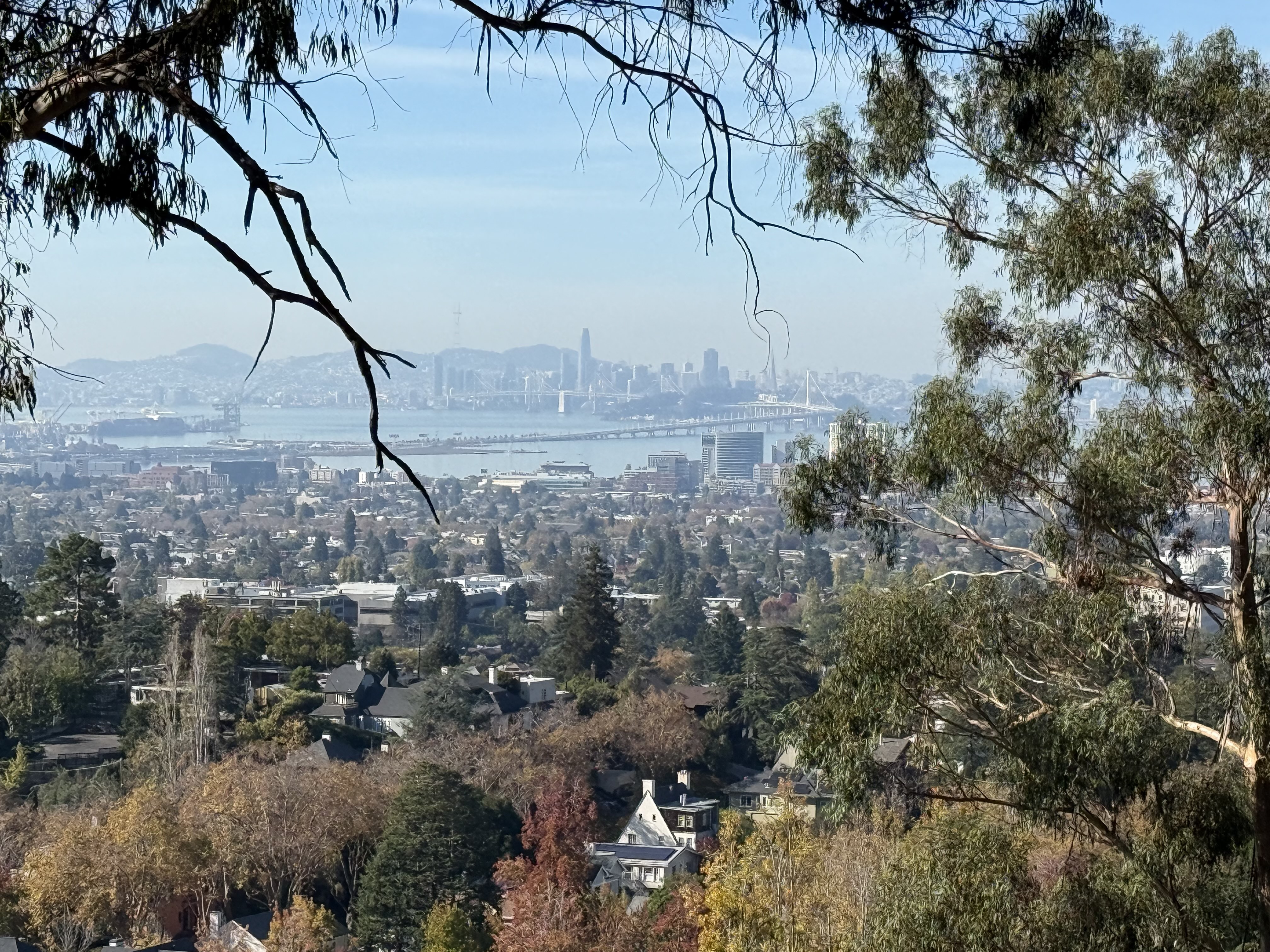 On my second weekend at Inkhaven, I hiked up Panoramic Hill1, which lies on Berkeley’s doorstep. Plentiful panoramic views of the Bay Area are littered across the trail and each took my breath awayThis was also on account of the steep ascents..